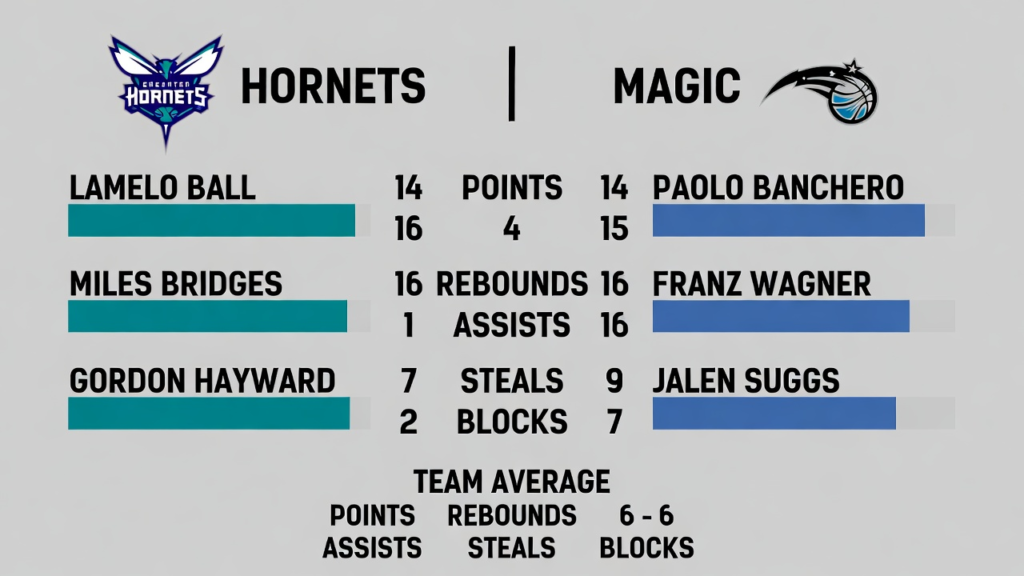 The game was full of fast breaks, three-point shots, and defensive plays. The Charlotte Hornets tried to dominate the match with strong offense, while the Orlando Magic focused on defense and team coordination. Player stats from this game give a clear picture of which players stood out and contributed the most.
